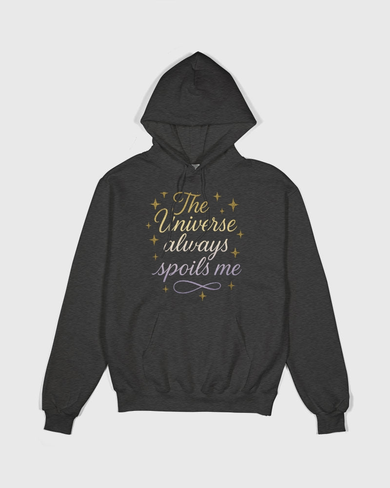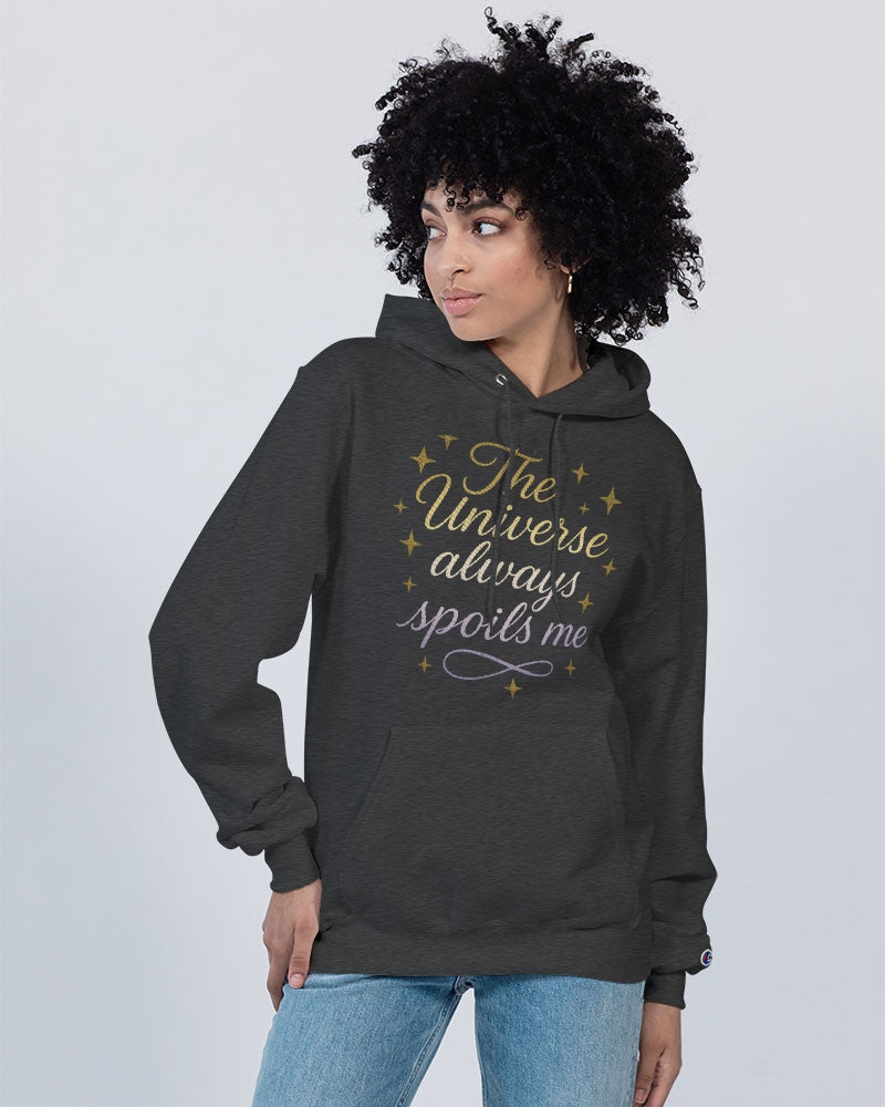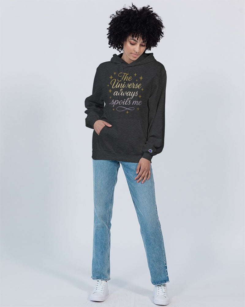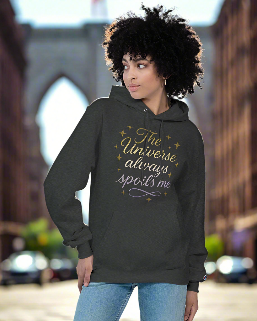 About The Artuniverse always spoil me Product DetailsThis Champion hoodie made of blended cotton with Double Dry® technology is bound to look stylish and keep you warm. Features front pouch pocket, double lined hood, and banded rib-knit hem and cuffs.